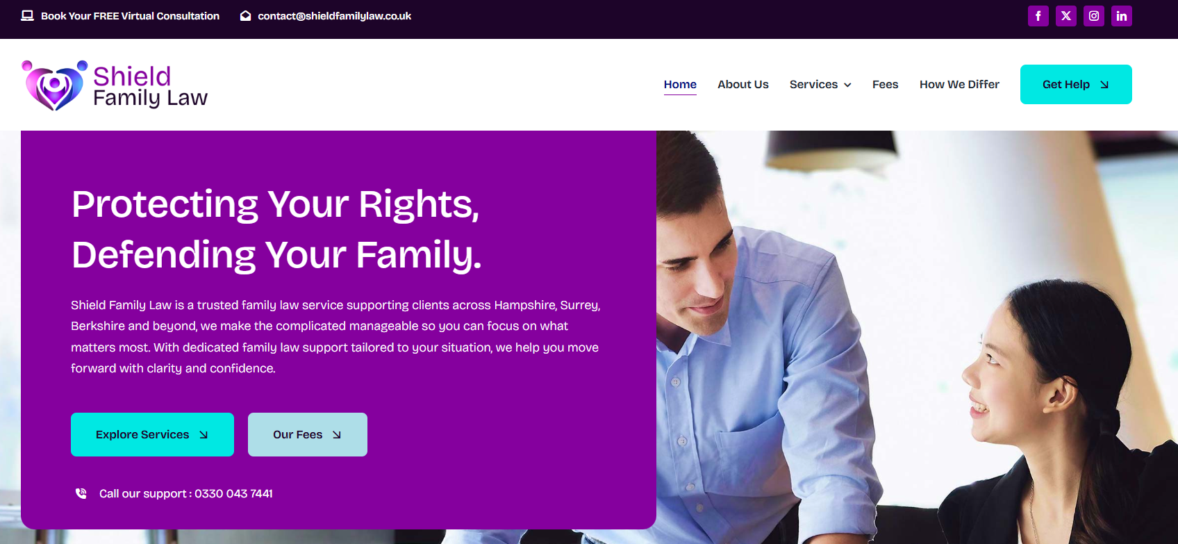 Example: Simple navigation and mobile-friendly layout – Shield Family Law