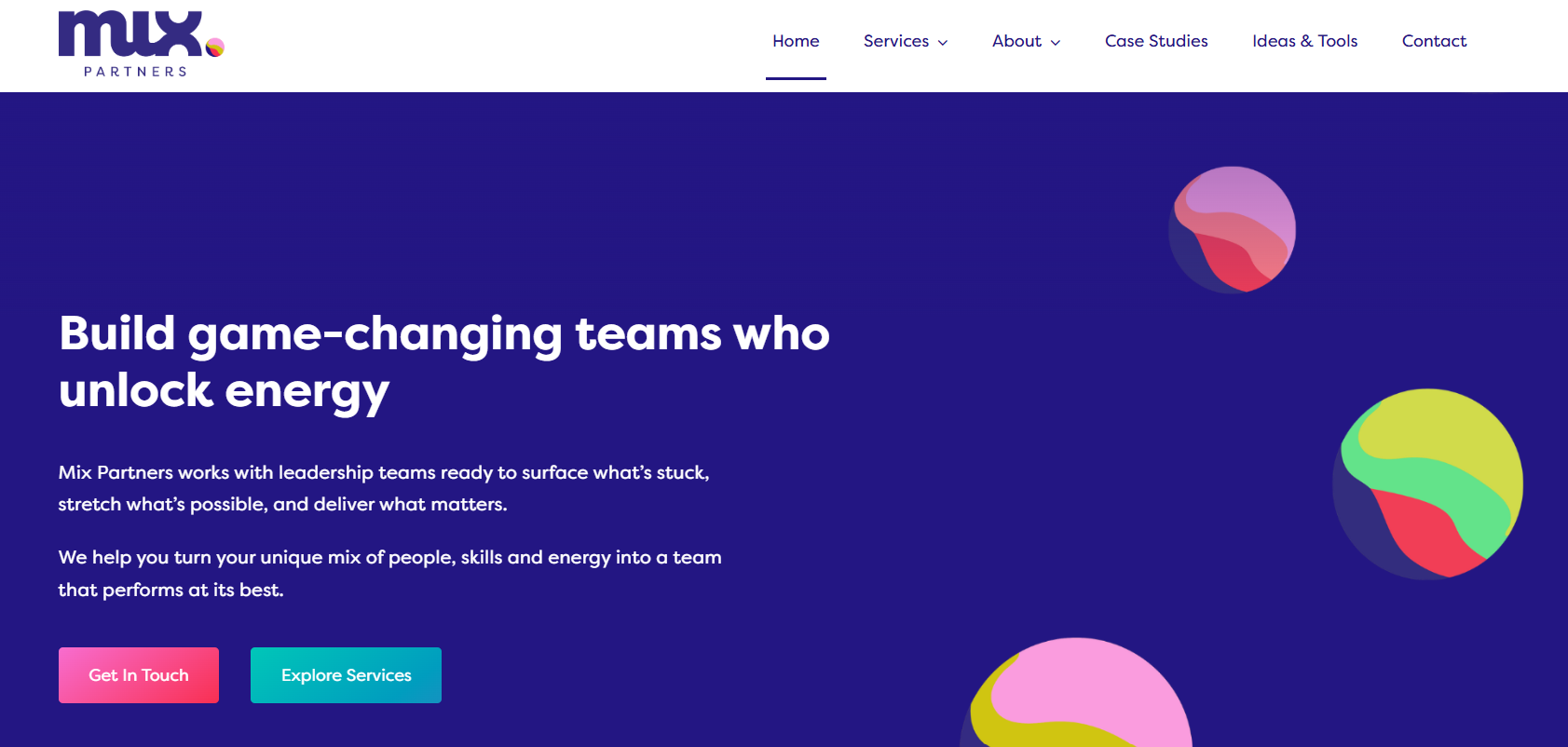 Example 2: Strong colour contrast and accessible branding – Mix Partners