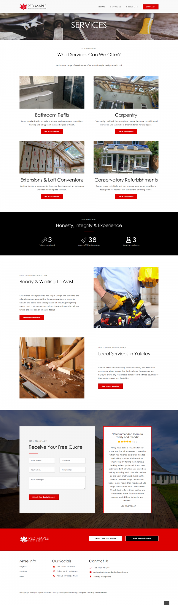 Red Maple Design & Build was an exciting project to get given. Callum and Steve were builders working for themselves, when they met and started working together they decided they wanted to go into business together. They had their idea, and they got in touch with me to bring it to life.
