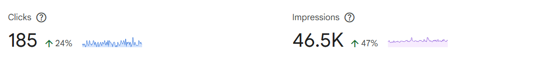 - Clicks: In the past three months alone, clicks have grown by 24% to 185 clicks, while impressions rose by 47% to 46.5K.